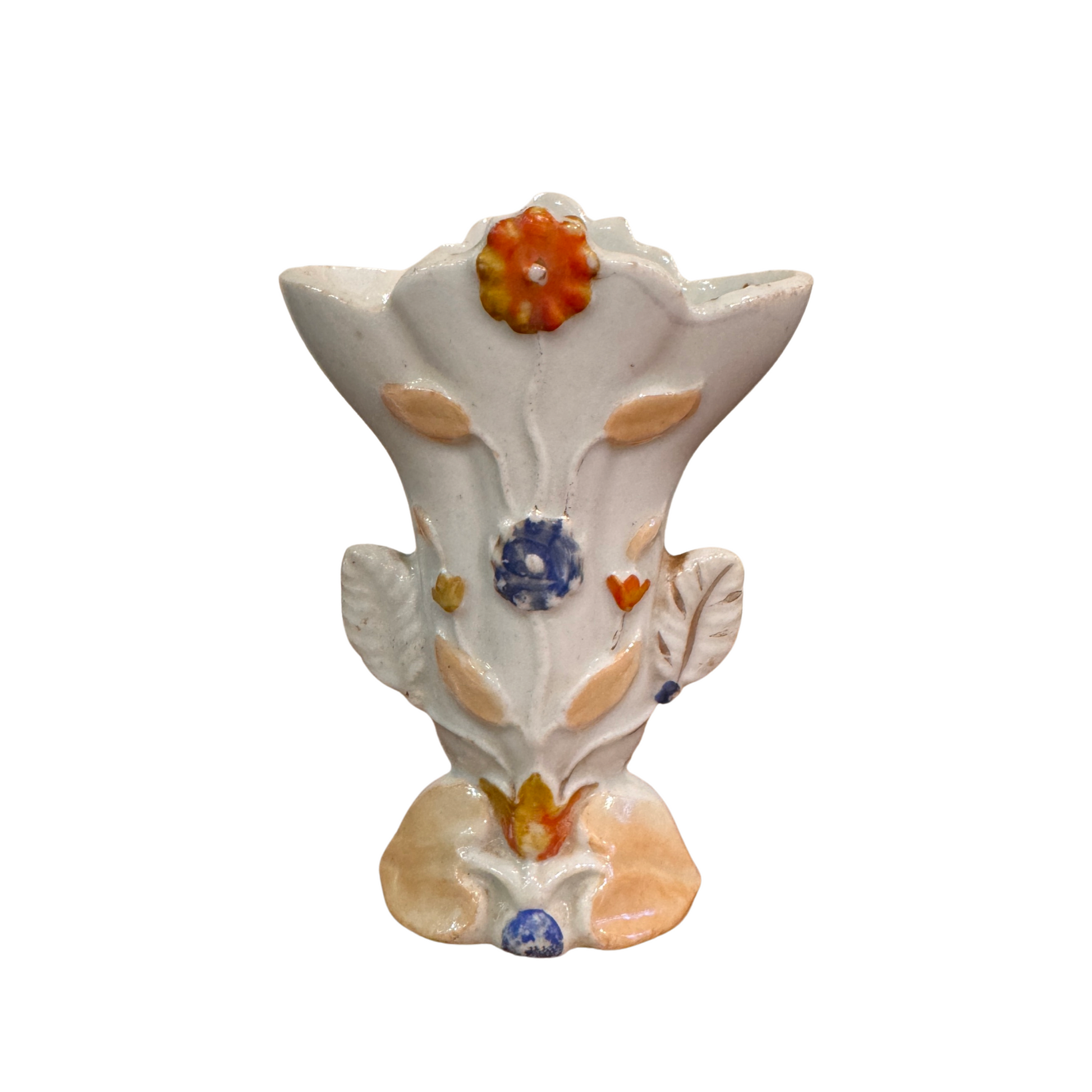 This adorable vintage french ceramic bud vase makes a perfect diffuser for any small area, with its muted blue, orange and gilt accents and simple floral design makes it a perfect fit for any decor. approximate dimensions 5.25" tall. comes with 8oz. oil and 9 diffuser sticks